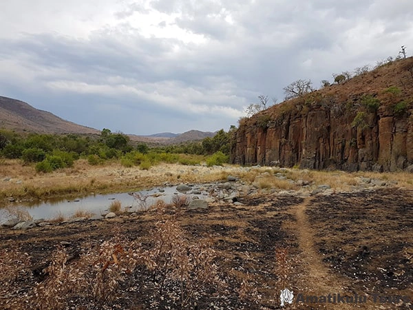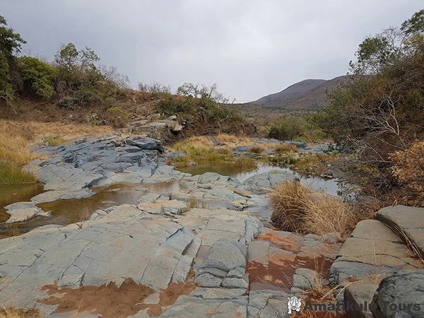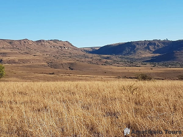 The reserve’s topography ranges from 400m above sea level in the north to 1,450m near Louwsburg in the south, creating a mosaic of habitats from lowveld and densely vegetated riverine valleys to high grassland plateaus, ridges, and cliffs. Evidence of human habitation spans thousands of years, from Stone Age tools dating back 200,000 years to Iron Age smelting sites from the Nguni people.